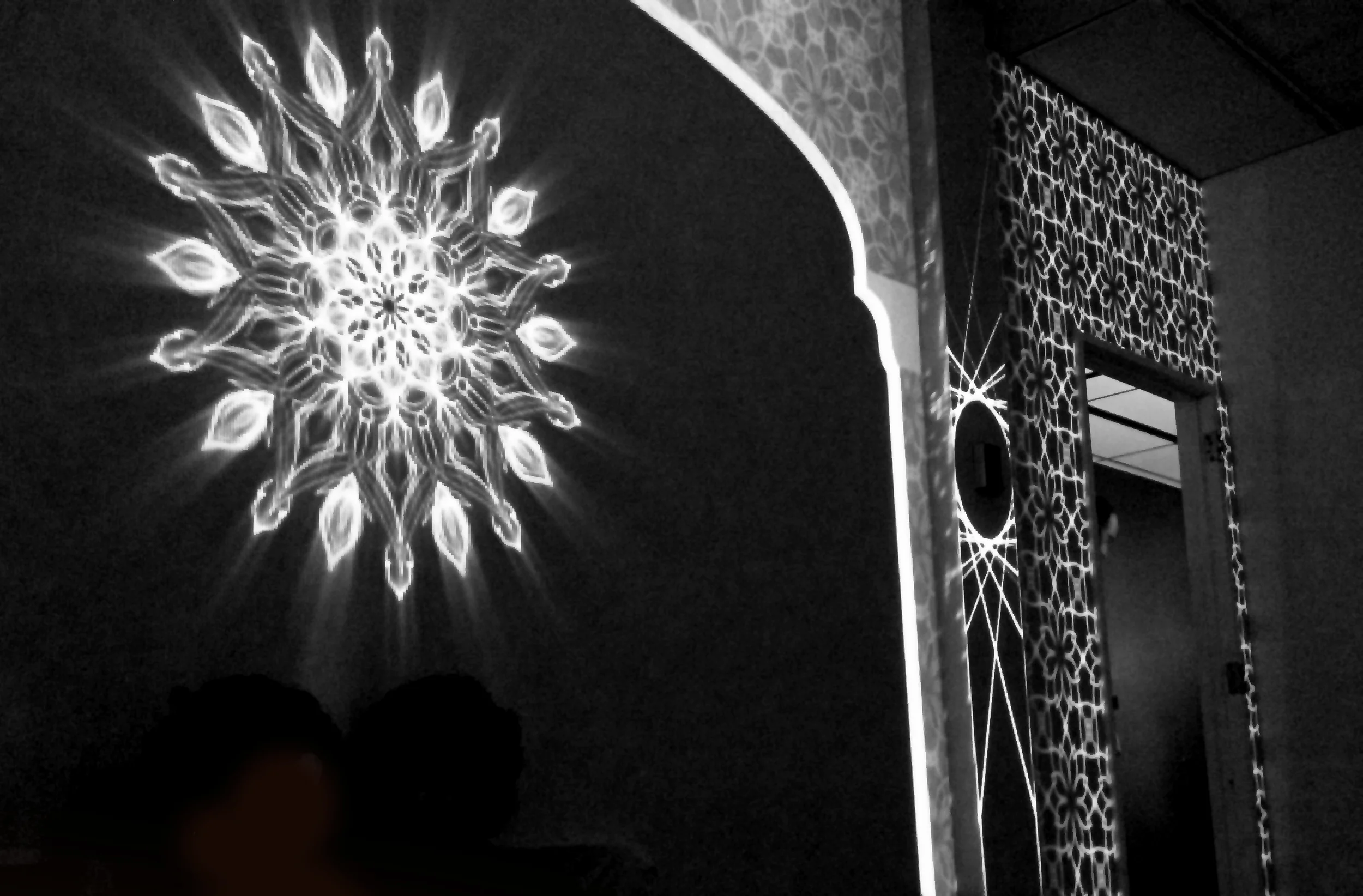 As an extension of my graduate studies in immersive media, I created a series of installation environments featuring animated Persian mandalas projected into and onto architecture through videomapping techniques.